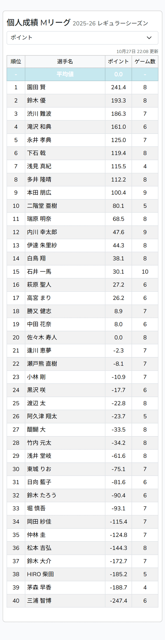— Mリーグ/プロ麻雀リーグ (@m_league_) October 27, 2025