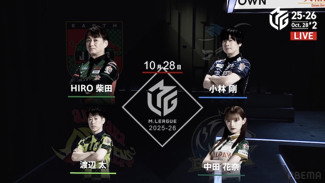麻雀プロリーグ「大和証券Mリーグ2025-26」レギュラーシーズン26日目が10月28日(火)に開催された。