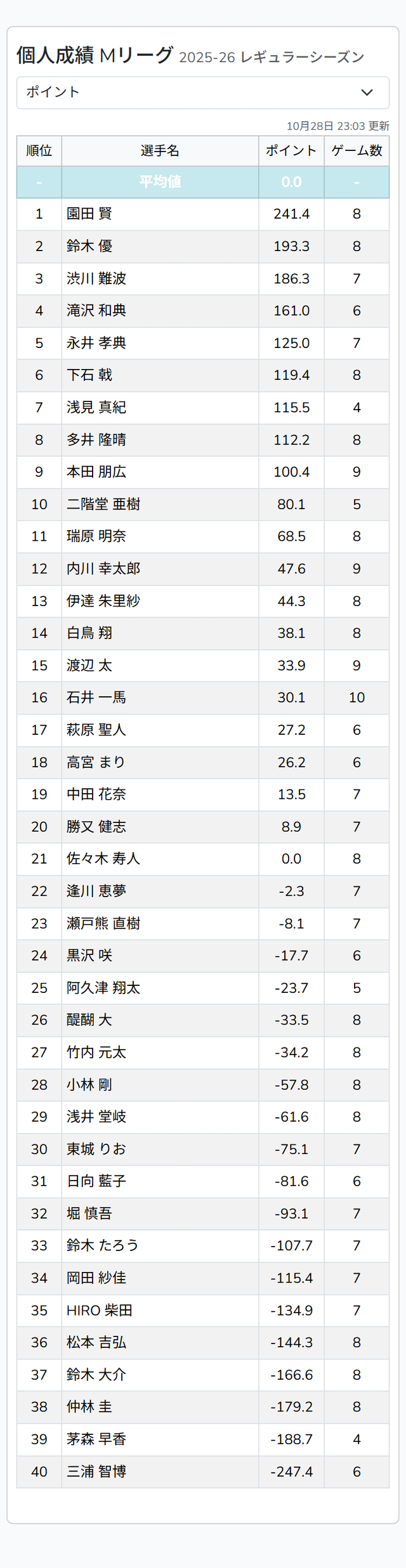 — Mリーグ/プロ麻雀リーグ (@m_league_) October 28, 2025