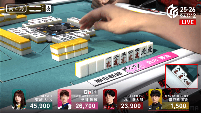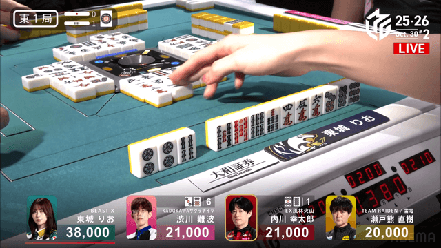 単騎の追いかけリーチもかかり、今半荘二度目の三軒リーチとなった。東城が親の瀬戸熊の現物