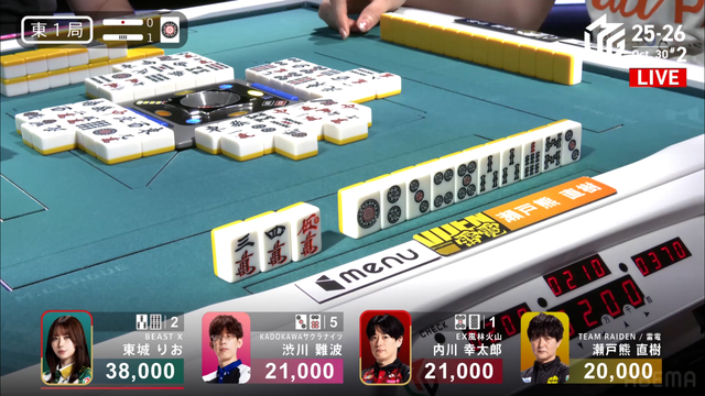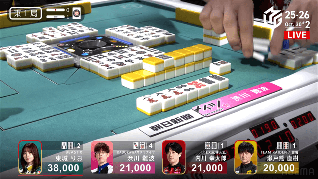 待ちで先制リーチ、宣言牌をポンした渋川も![]()