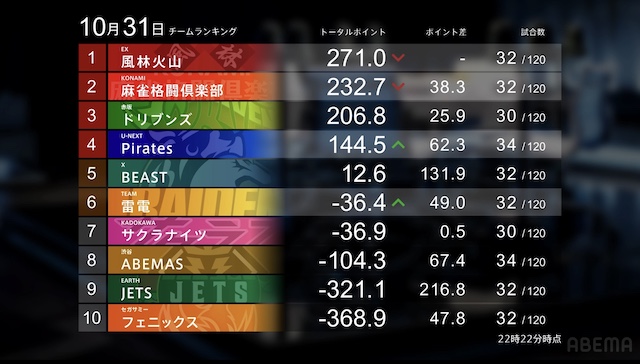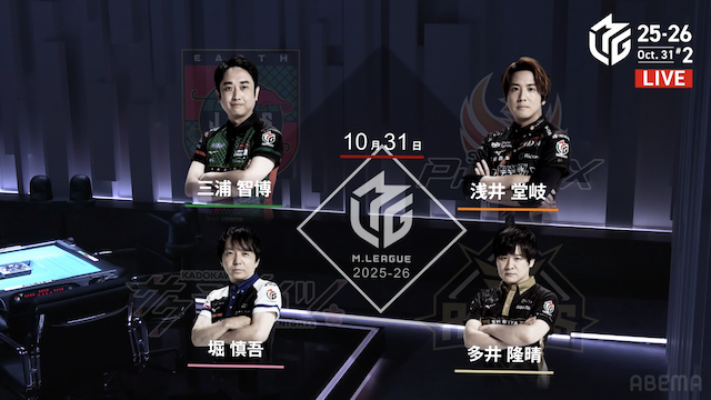 麻雀プロリーグ「大和証券Mリーグ2025-26」レギュラーシーズン28日目が10月31日(金)に開催された。