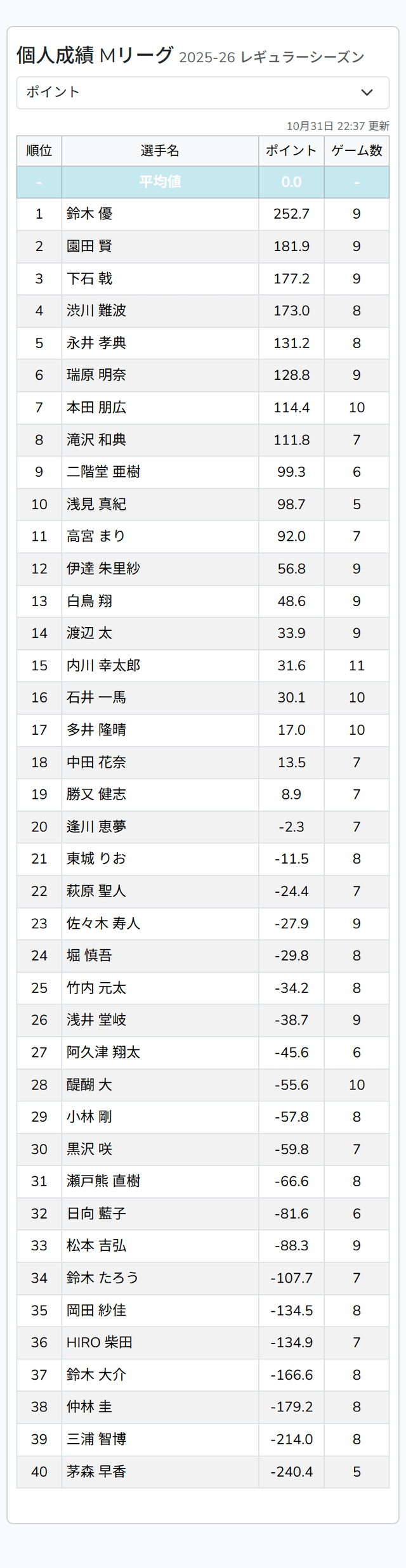 — Mリーグ/プロ麻雀リーグ (@m_league_) October 31, 2025