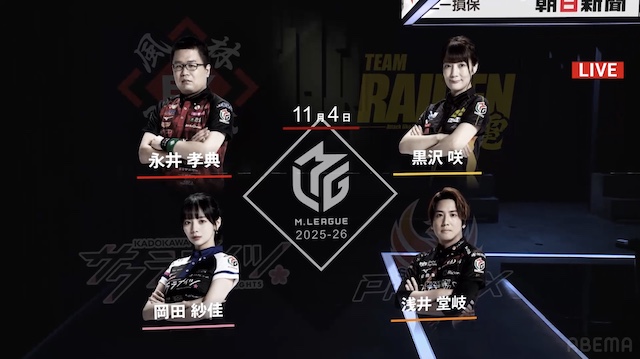 — Mリーグ/プロ麻雀リーグ (@m_league_) November 4, 2025