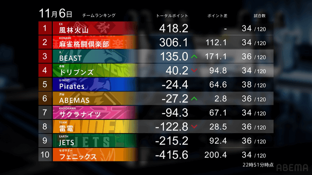 ABEMAS、BEASTがどちらもトップ2着で前進、BEASTはチーム初の3桁プラスに到達した。