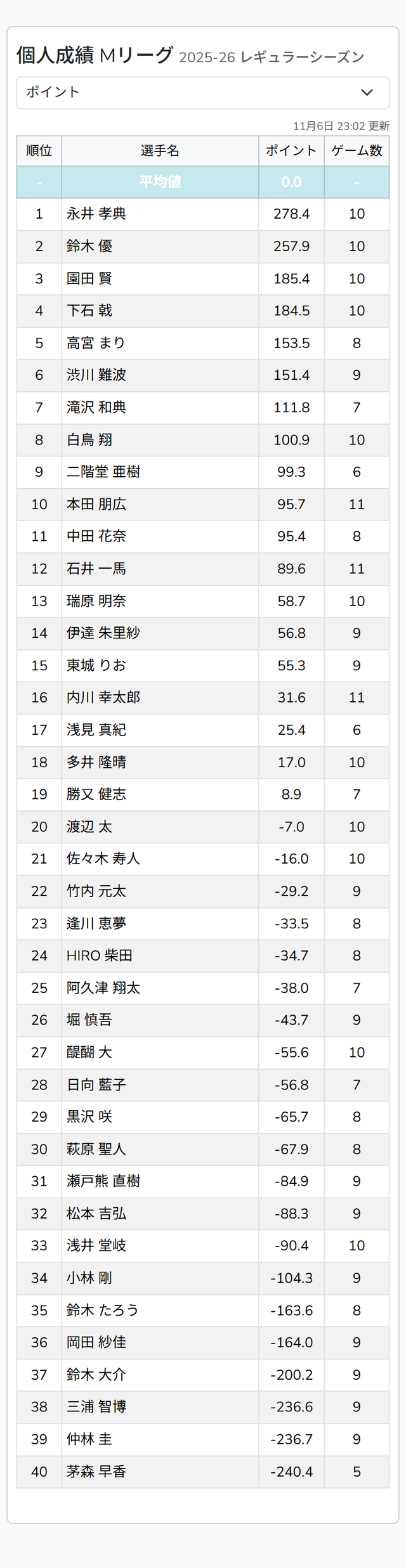 — Mリーグ/プロ麻雀リーグ (@m_league_) November 6, 2025