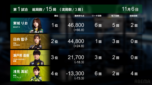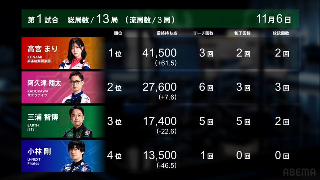 — Mリーグ/プロ麻雀リーグ (@m_league_) November 6, 2025
