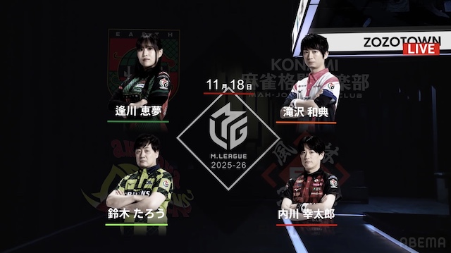 麻雀プロリーグ「大和証券Mリーグ2025-26」レギュラーシーズン38日目が11月18日(火)に開催された。