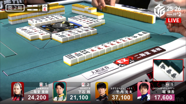 南1局1本場 #二階堂亜樹 選手の親跳満のアガリ!