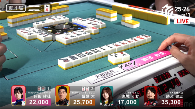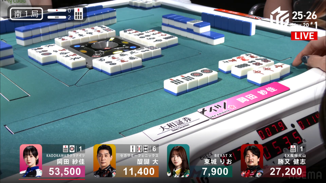 南1局1本場 #岡田紗佳 選手の親満貫ツモ!