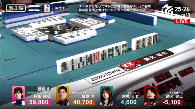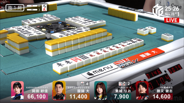 麻雀プロリーグ「大和証券Mリーグ2025-26」レギュラーシーズン39日目が11月20日(木)に開催された。