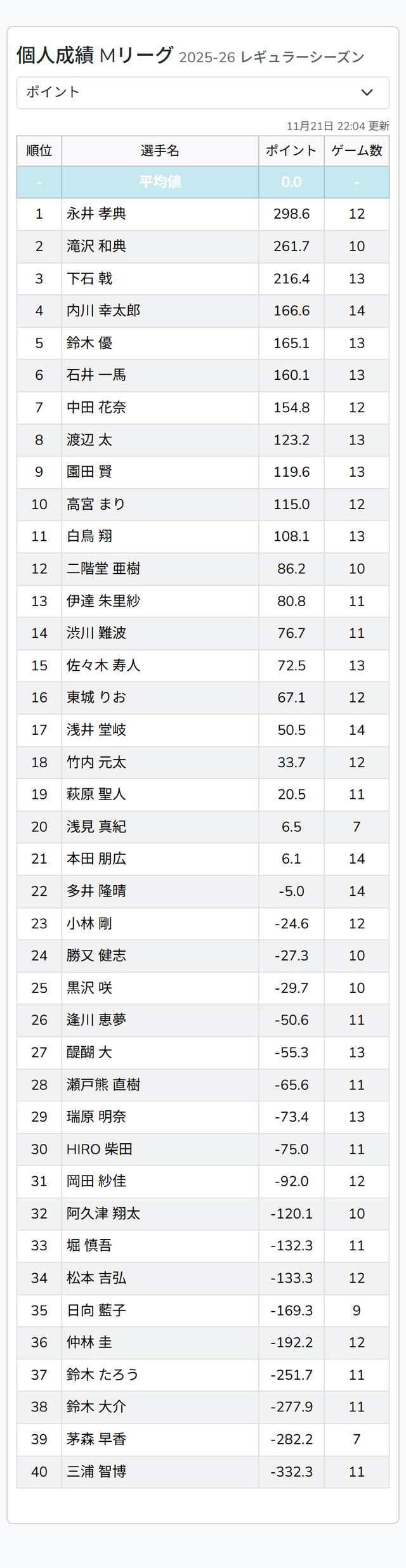 — Mリーグ/プロ麻雀リーグ (@m_league_) November 21, 2025