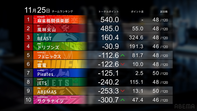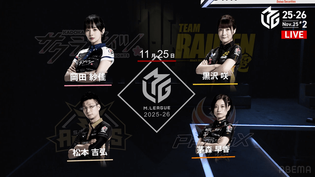— Mリーグ/プロ麻雀リーグ (@m_league_) November 25, 2025