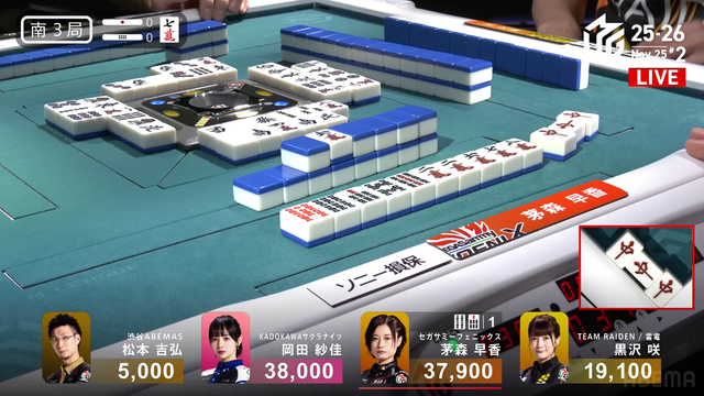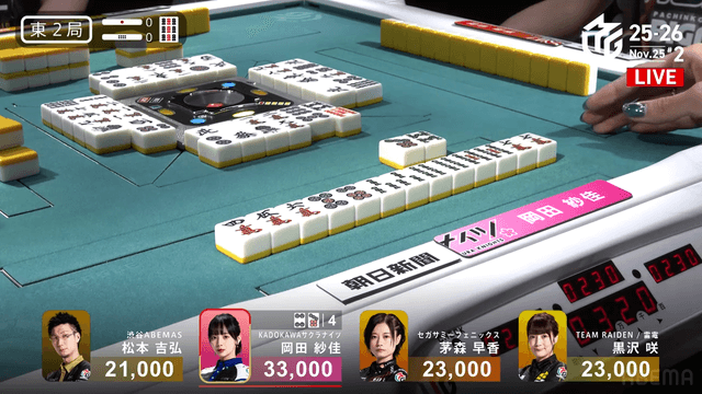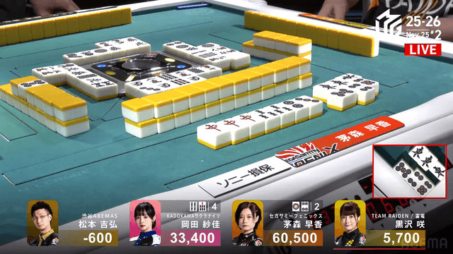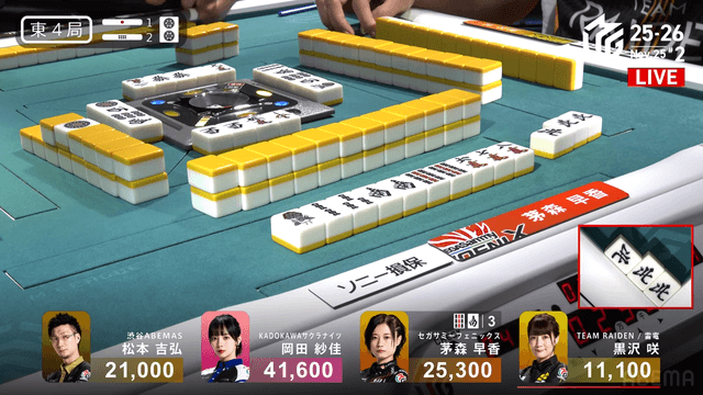 が放たれて茅森のアガリ。茅森はトップ目に立つ。
