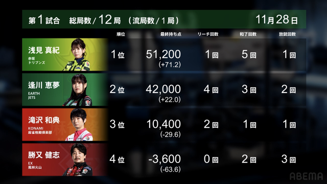 — Mリーグ/プロ麻雀リーグ (@m_league_) November 28, 2025