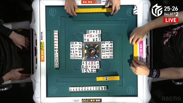 待ちでテンパイ。そこに多井が追いつき![]()