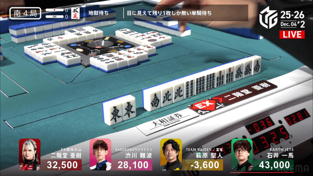 麻雀プロリーグ「大和証券Mリーグ2025-26」レギュラーシーズン47日目が12月4日(木)に開催された。