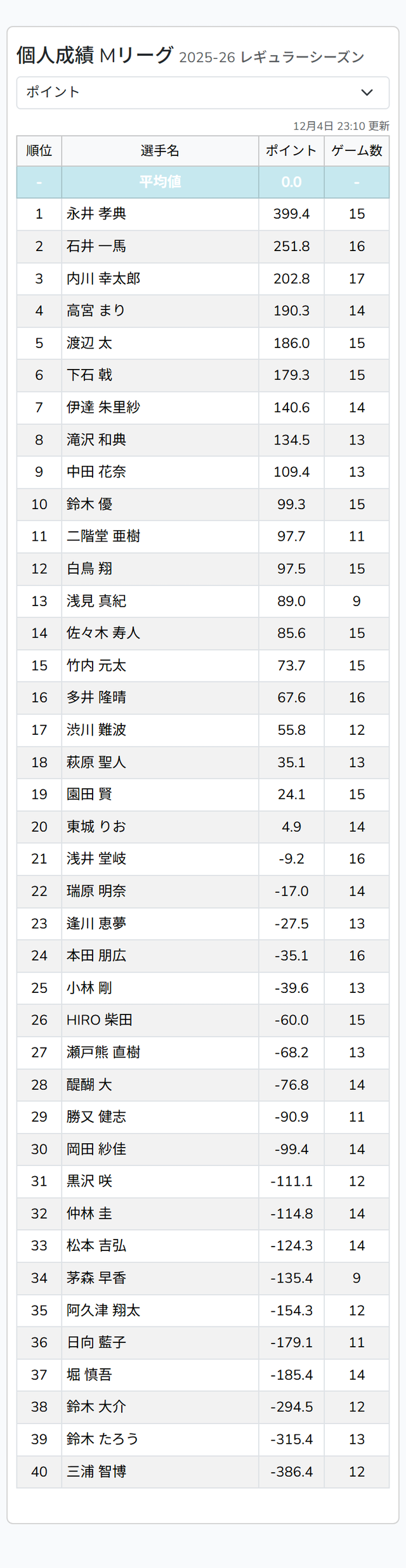 — Mリーグ/プロ麻雀リーグ (@m_league_) December 4, 2025