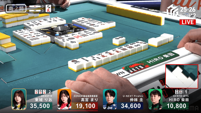 待ちでリーチをするが結果は柴田と高宮の2人テンパイで流局。
