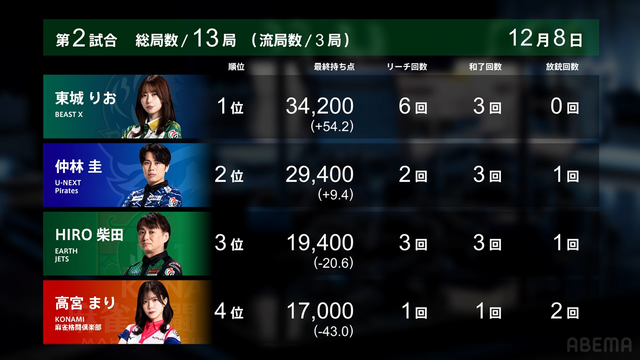 — Mリーグ/プロ麻雀リーグ (@m_league_) December 8, 2025