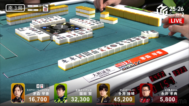 麻雀プロリーグ「大和証券Mリーグ2025-26」レギュラーシーズン50日目が12月9日(火)に開催された。