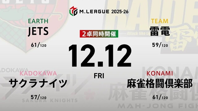 — KONAMI麻雀格闘倶楽部@Mリーグ【公式】 (@mfcmleague1) December 12, 2025