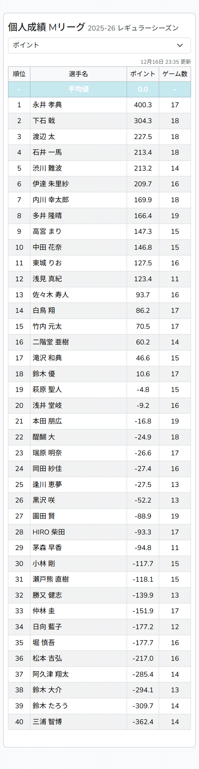— Mリーグ/プロ麻雀リーグ (@m_league_) December 16, 2025