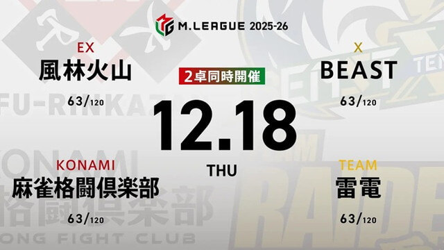 — KONAMI麻雀格闘倶楽部@Mリーグ【公式】 (@mfcmleague1) December 18, 2025