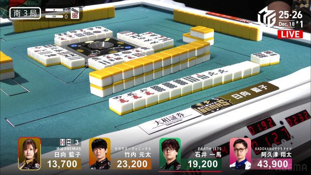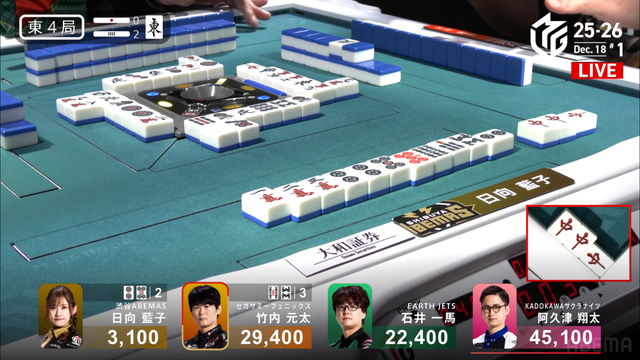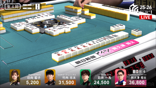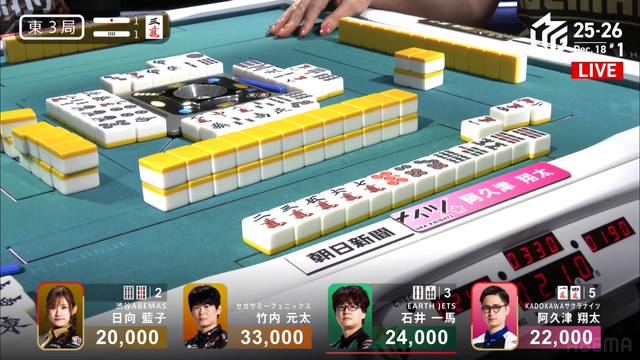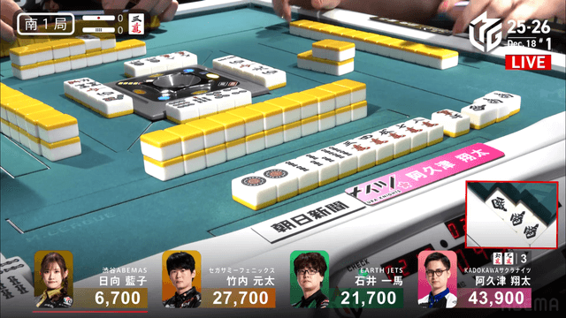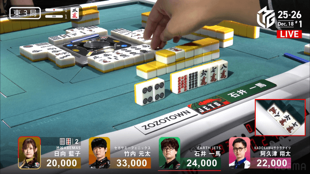 東3局1本場 #阿久津翔太 選手の跳満のアガリ!