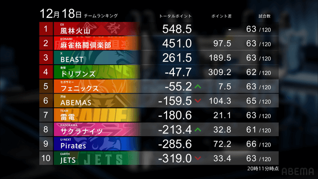 麻雀プロリーグ「大和証券Mリーグ2025-26」レギュラーシーズン55日目が12月18日(木)に開催された。