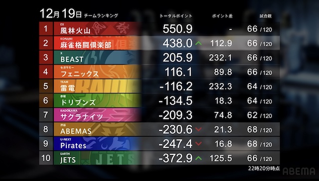 大和証券 Mリーグ2025-26 レギュラーシーズン 57日目 12/22