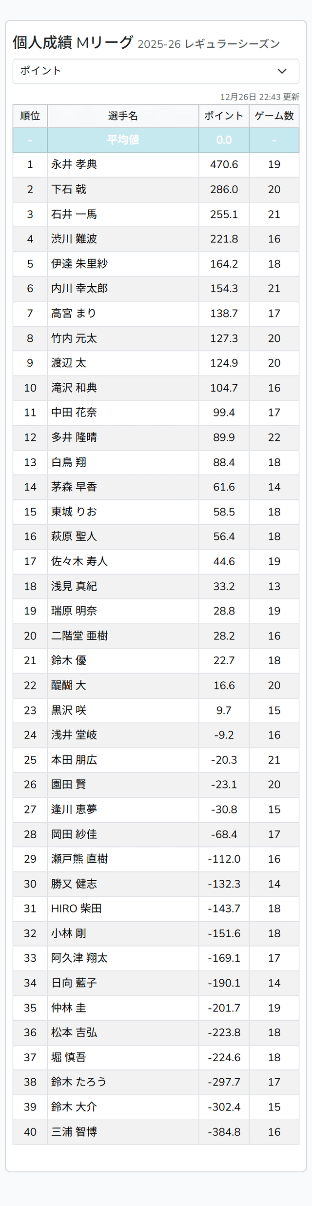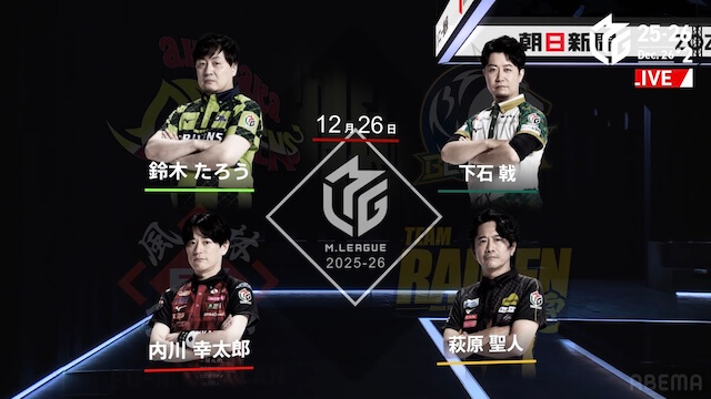 — Mリーグ/プロ麻雀リーグ (@m_league_) December 26, 2025