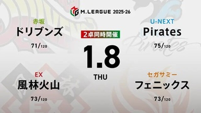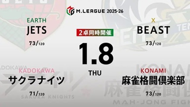 麻雀プロリーグ「大和証券Mリーグ2025-26」レギュラーシーズン63日目が1月8日(木)に開催された。