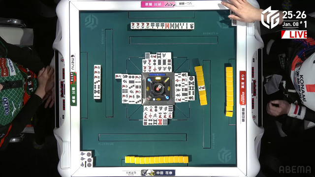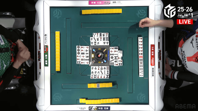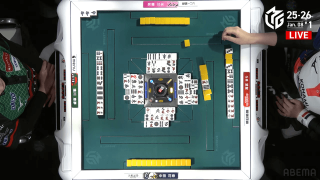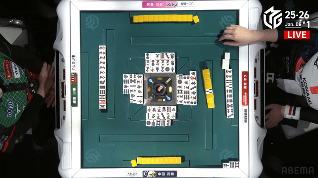 東3局1本場、2副露の中田が先制テンパイ。中田は