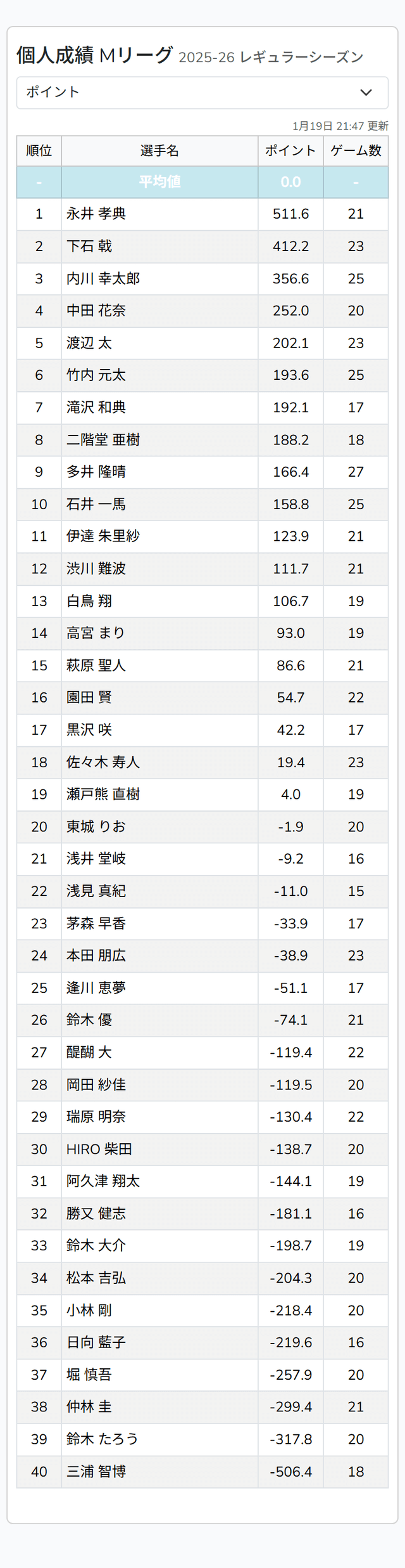 — Mリーグ/プロ麻雀リーグ (@m_league_) January 19, 2026