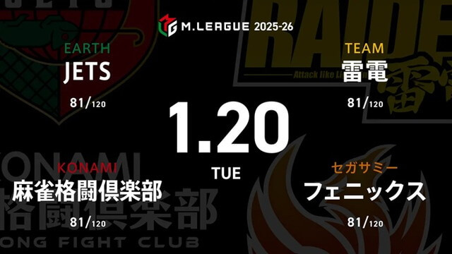 大和証券 Mリーグ2025-26 レギュラーシーズン 70日目 1/20