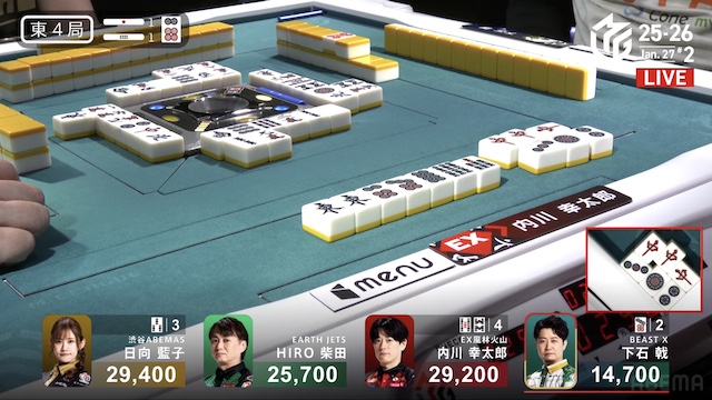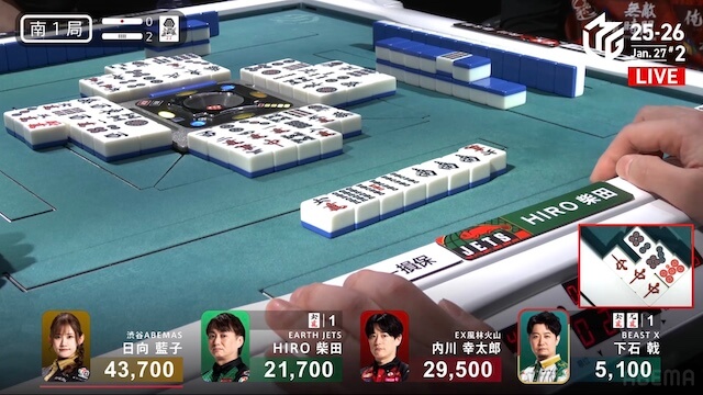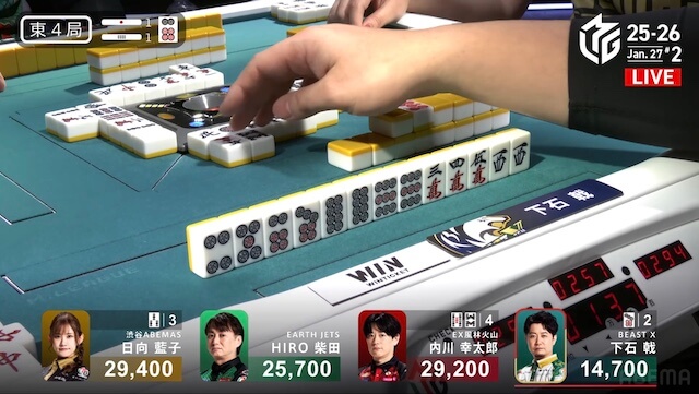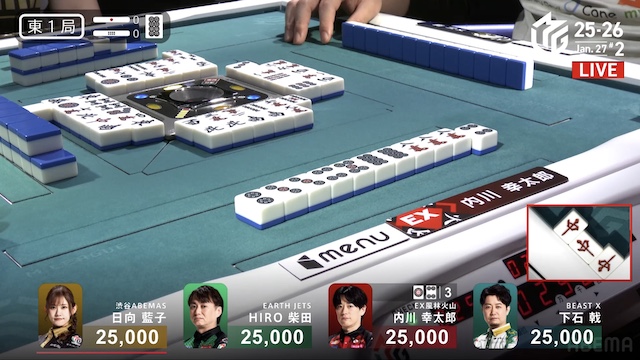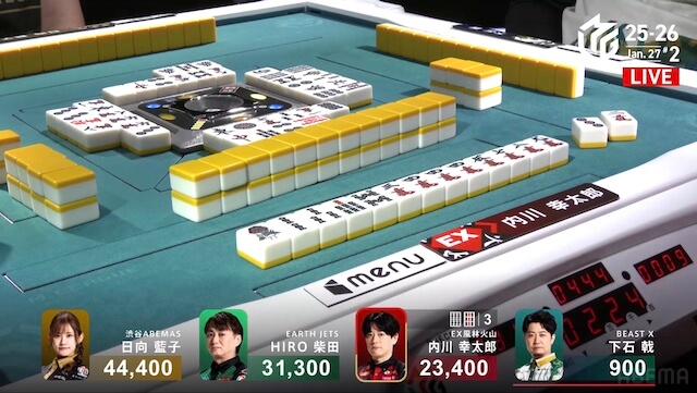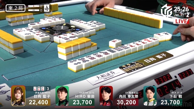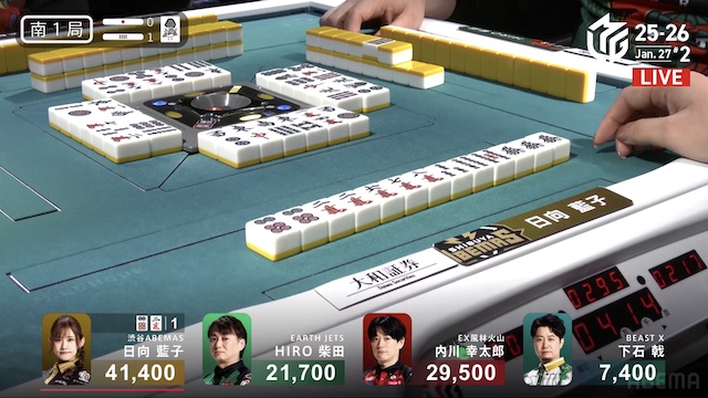 東1局、親の日向が仕掛ける中、内川が