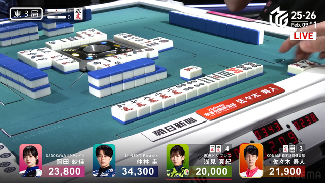 東3局、親の浅見が2副露で![]()
