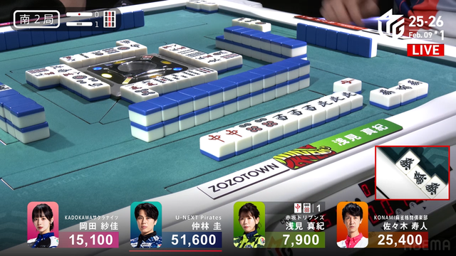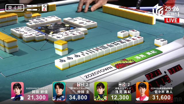 待ちのダマテンを入れる。さらに岡田が追いつくがリーチ宣言牌の
