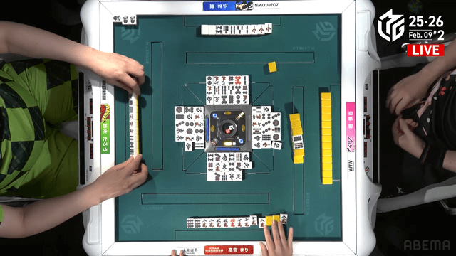 待ちでリーチ。高宮はオリに回り結果はたろうの1人テンパイで流局。