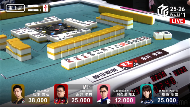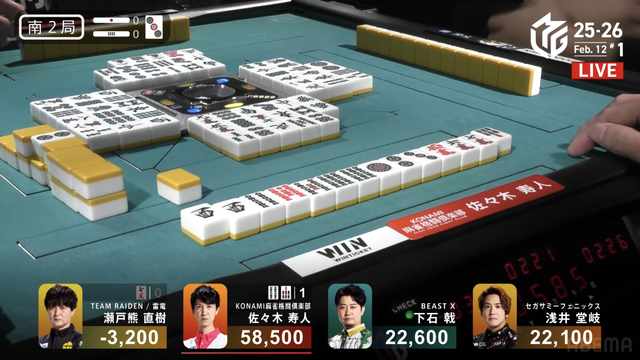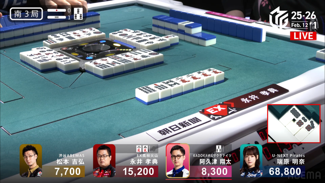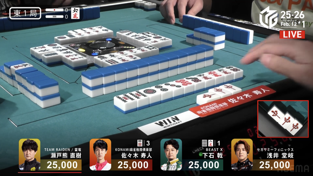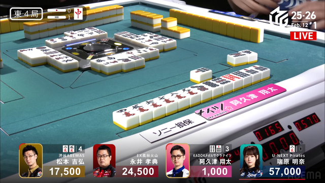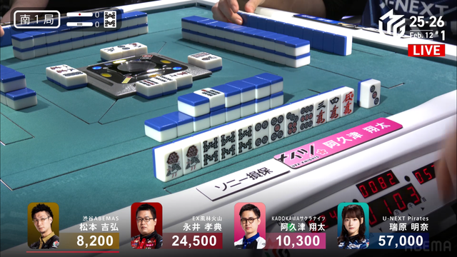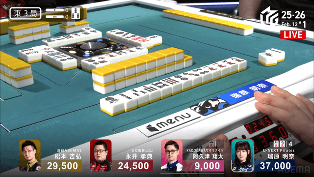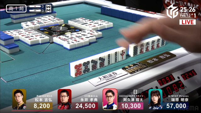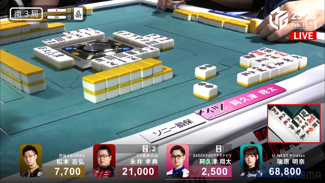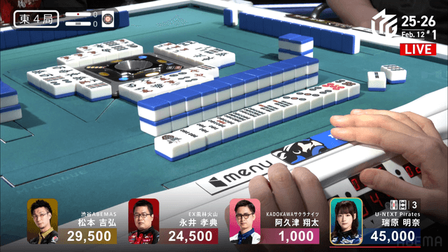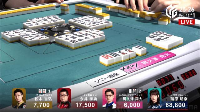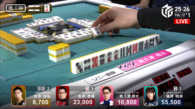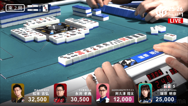 が打ち出され、瑞原が2000のアガリ、2着目の永井の親番を流す。