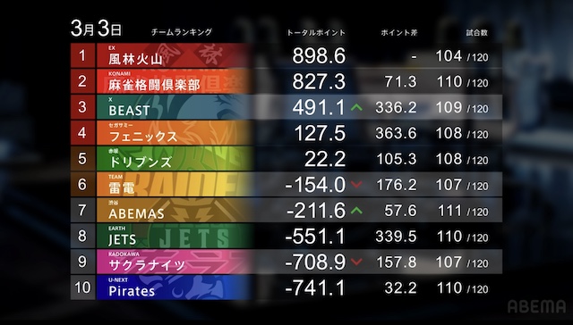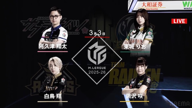 麻雀プロリーグ「大和証券Mリーグ2025-26」レギュラーシーズン94日目が3月3日(火)に開催された。