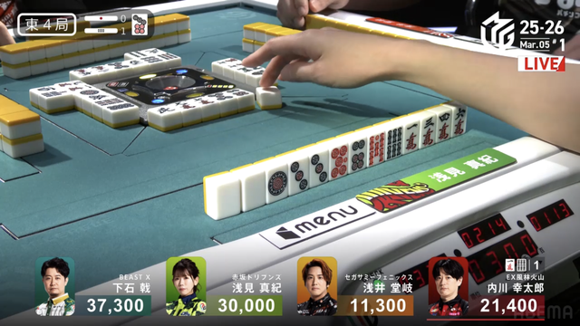 東4局2本場、打点を意識した進行を見せた浅見が
