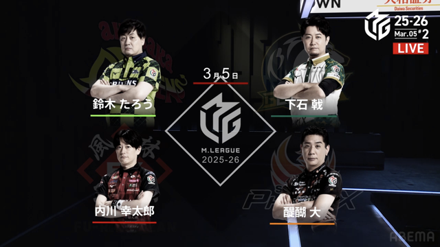 麻雀プロリーグ「大和証券Mリーグ2025-26」レギュラーシーズン95日目が3月5日(木)に開催された。