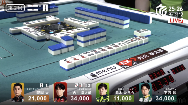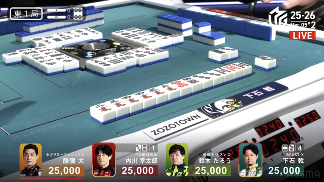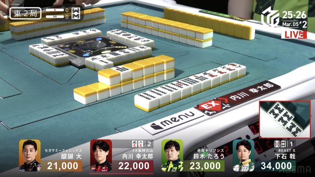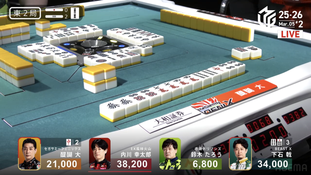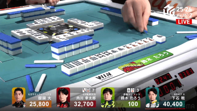 が打ち出され内川の1000のアガリとなり、醍醐の大物手を躱すことに成功する。
