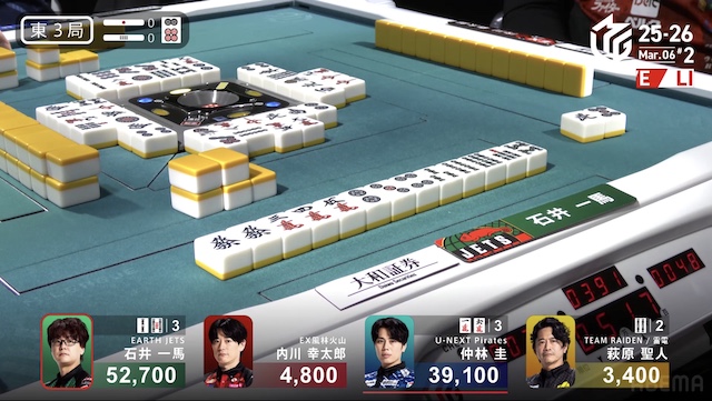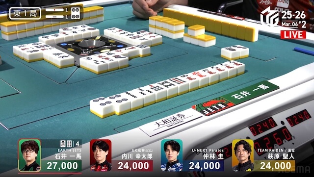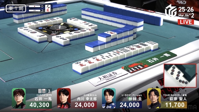 東1局3本場 #石井一馬 選手の親満貫のアガリ!