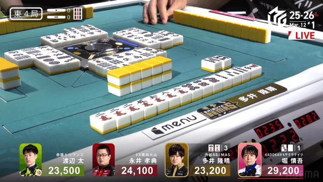 結果は多井選手がアガリをもぎ取り
