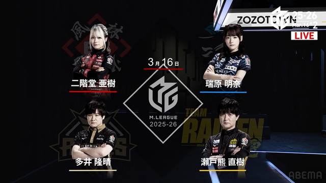 麻雀プロリーグ「大和証券Mリーグ2025-26」レギュラーシーズン101日目が3月16日(月)に開催された。