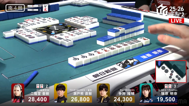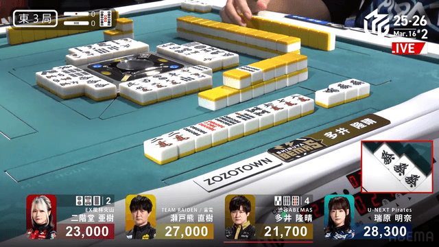 待ちテンパイ。そこに親の瑞原が仕掛けて![]()