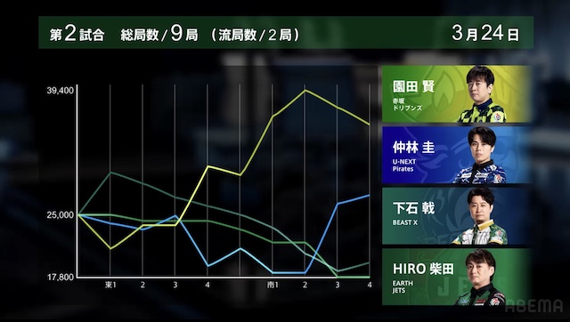 ここでBEASTとJETSのレギュラーシーズンの戦いは終了、残すは2日間。まずは木曜に風林火山、サクラナイツ、麻雀格闘倶楽部、ABEMASがレギュラーシーズン最後の戦いに臨む。